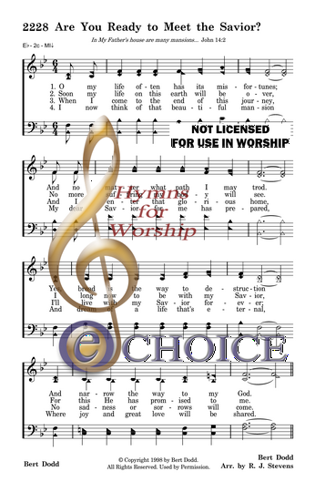 Are you ready to meet the Savior? Have you given your life to Him? Will you sing with the saints of the Ages Those grand and glorious hymns?