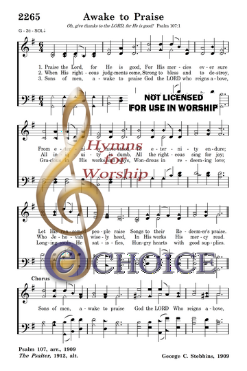 Sons of men, awake to praise God the LORD Who reigns above, Gracious in His works and ways,  Wondrous in redeeming love.