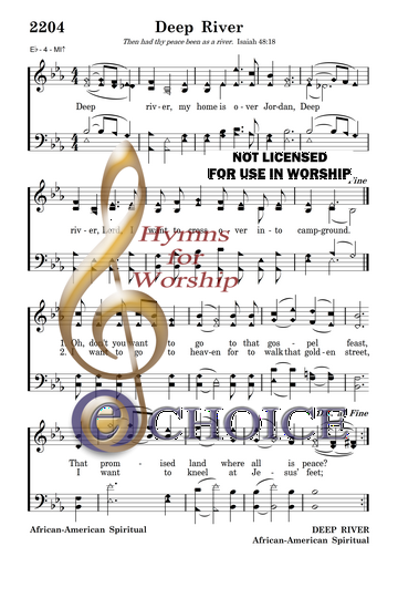 Deep river, my home is over Jordan, Deep river, Lord, I want to cross over into campground. I want to go to heaven for to walk that golden street, I want to kneel at Jesus’ feet; Deep river, my home is over Jordan, Deep river, Lord, I want to cross over into campground.