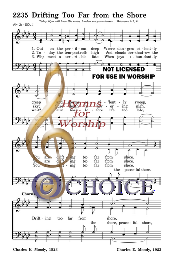 Out on the perilous deep Where dangers silently creep And storms so vi’lently sweep, You are drifting too far from the shore.