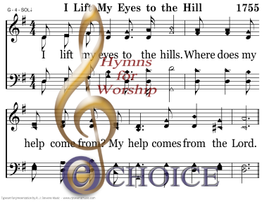 Verse 1: I lift my eyes to the hills. Where does my help come from? My help comes from the Lord. As the ground be gins to crumble, and my feet be neath me stumble, He who saves me from my trouble is my Help er and my Lord.