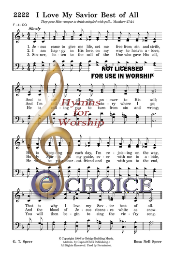 Jesus suffered on the cross to redeem my soul from loss, All they offered Him to drink was bitter gall; It was all for you and me that He suffered agony, That is why I love my Savior best of all.