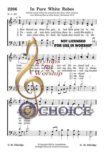 In pure white robes, behind the Lamb, they march unto the tree. And there amid its sacred shade unending streams of praise cascade the song of victory.