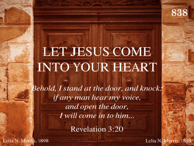 Chorus: Just now your doubtings give o’er, Just now reject Him no more; Just now throw open the door; Let Jesus come into your heart.