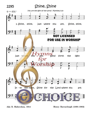 Shine, shine just where you are, Shine, shine just where you are; Send forth the light into the night, Shine for the Lord where you are.