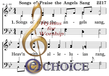 Songs of praise the angels sang, Heav’n with alleluias rang, When creation was begun, When God spoke and it was done.