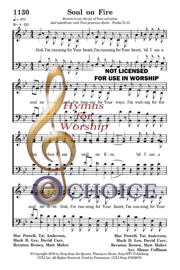 Hymn Status: License Required (User(s) of this hymn must have a license with CCLI, OneLicense or other licensing entity and accept the responsibility of reporting its usage.)