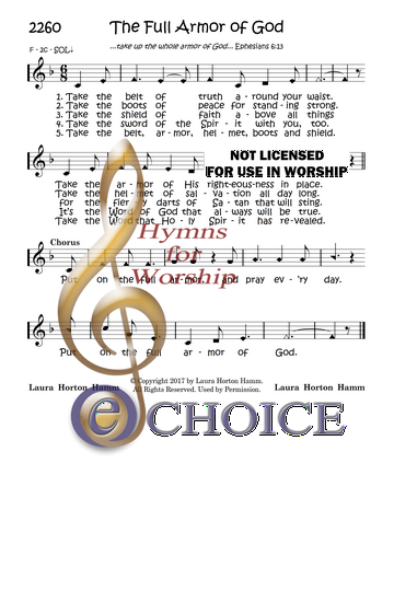 Put on the full armor, and pray ev’ry day. Put on the full armor of God.