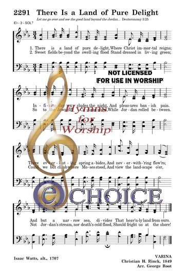 There is a land of pure delight, Where Christ immortal reigns; Infinite day excludes the night, And pleasures banish pain. There everlasting spring abides, And never-with’ring flow’rs; And but a narrow sea, divides That heavenly land from ours.