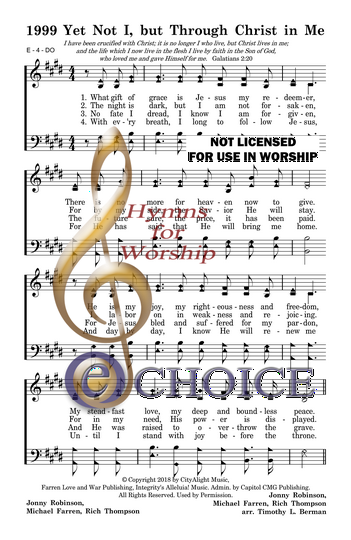 No fate I dread, I know I am forgiven, The future sure, the price, it has been paid. For Jesus bled and suffered for my pardon, And He was raised to overthrow the grave. To this I hold, my sin has been defeated. Jesus now and ever is my plea. Oh, the chains are released, I can sing, “I am free, Yet not I, but through Christ in me”